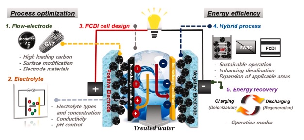 Flow-electrode capacitive deionization (FCDI) is a new electrochemical-based desalination technology that addresses