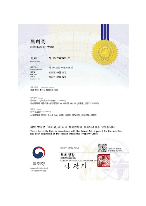 저희 일렉트로워터가 ‘흐름 전극용 카트리지 유닛 및 이를 이용한 흐름 전극 축전식 탈이온화 장치’에 대한 특허(특허 번호: 제10-2685807호)를 획득했습니다. 이번 특허는 저희 일렉트로워터의 지속적인 연구개발 노력의 결실로, 환경 친화적인 수처리 솔루션을 제공하는 데 중요한 역할을 할 것입니다.