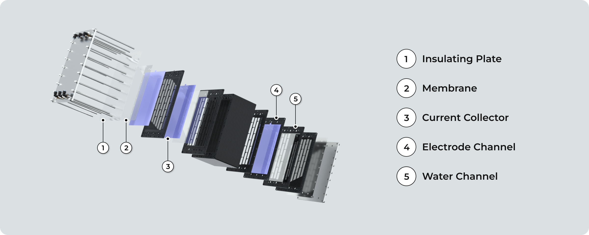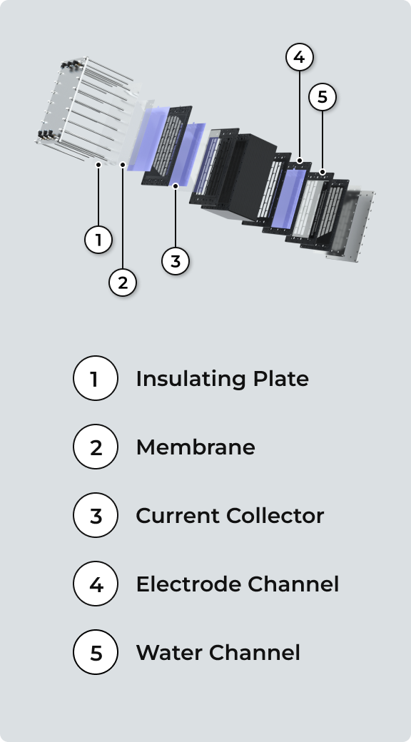 The Electro Sorption system is advanced water treatment solution designed to remove ionic substances from water by combining ion-exchange membranes with innovative supercapacitor flow electrodes developed by Electrowater